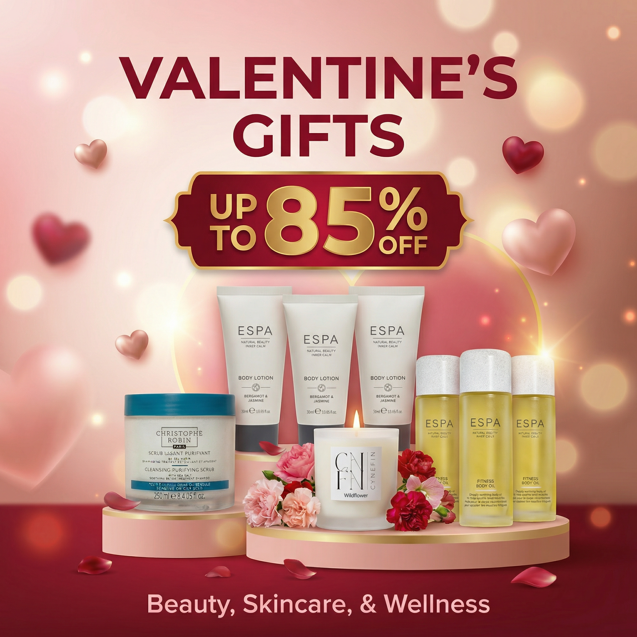 In each Mystery box will receive a random selection of our beauty and skincare range. Typically between 8-12 products per box, you will receive £100+ worth of cosmetics. You could receive products ranging from: