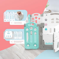 KIDOOLA Adjustable Plastic Baby Toddler Playpen & Anti Slip Playmats (Light Blue)